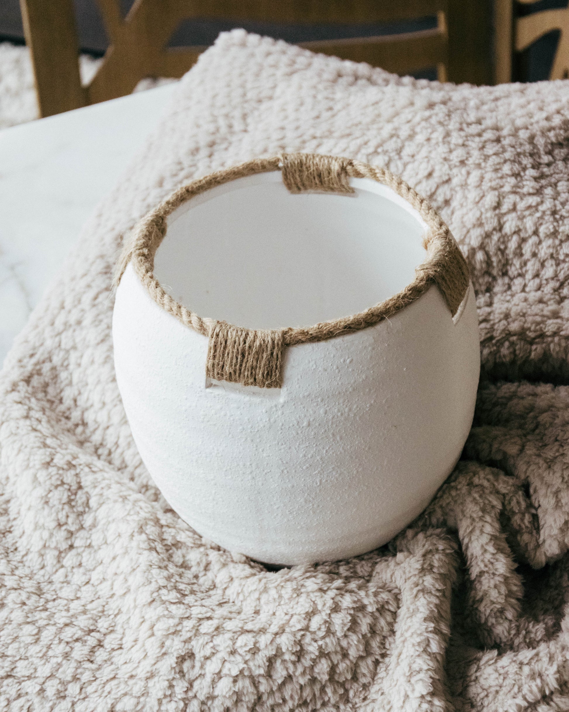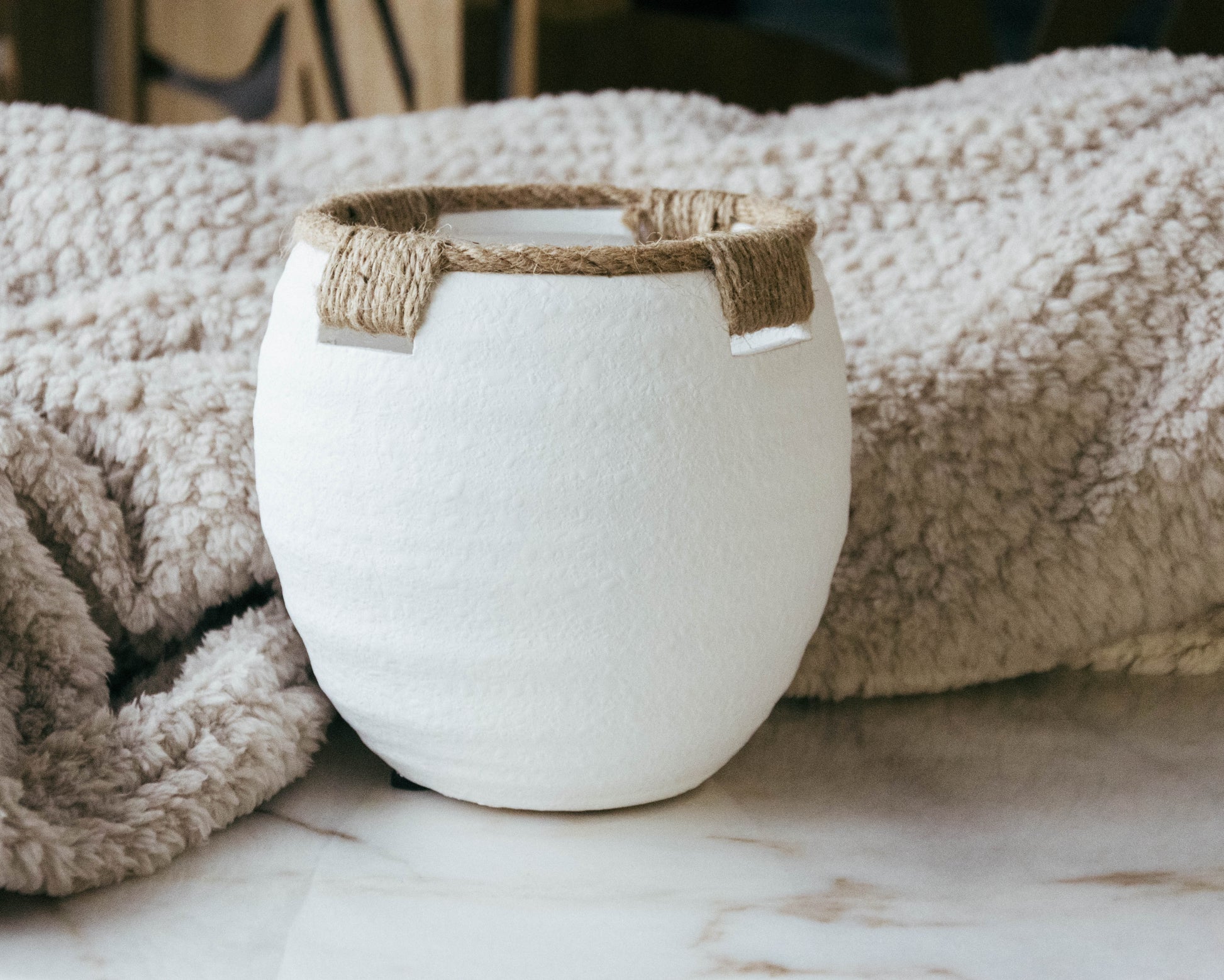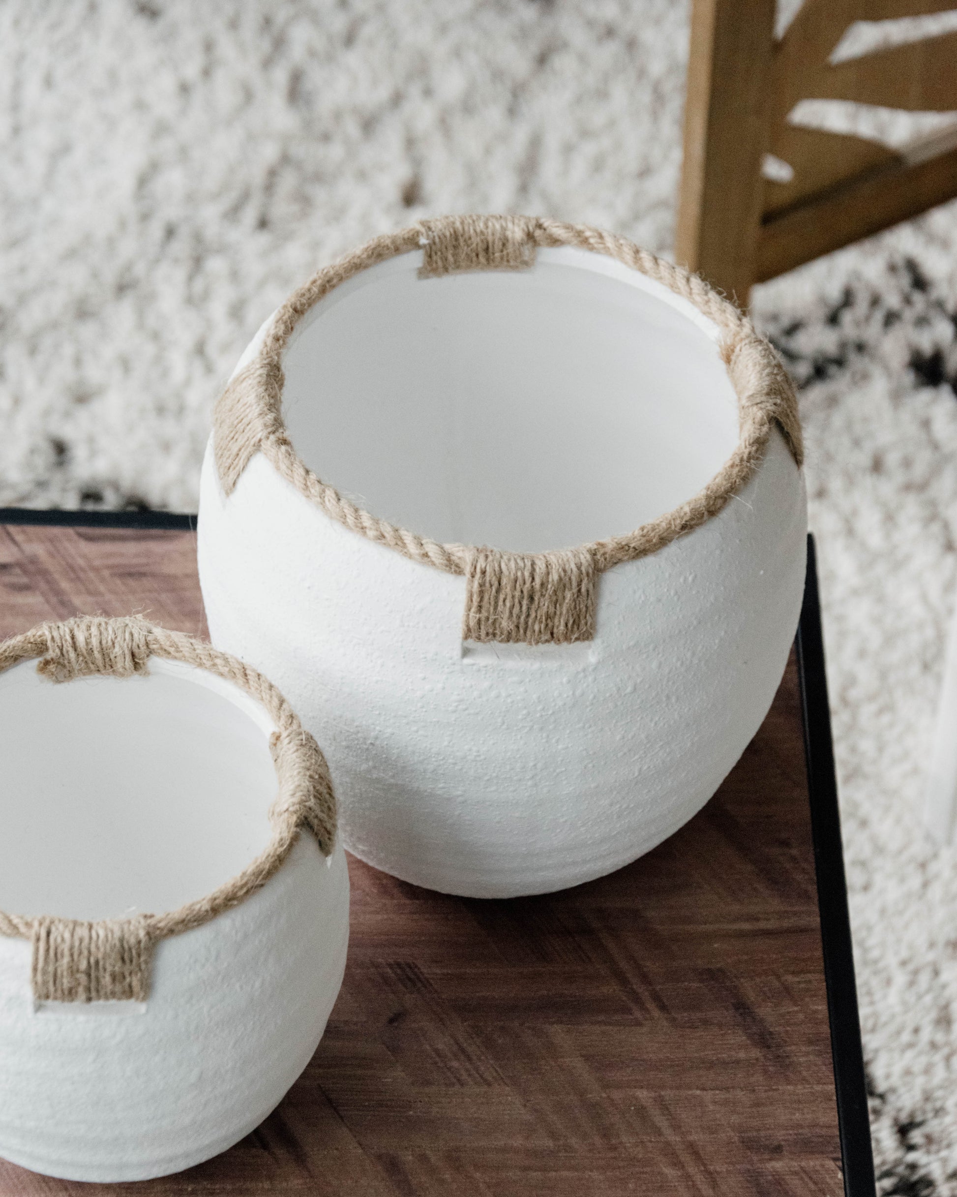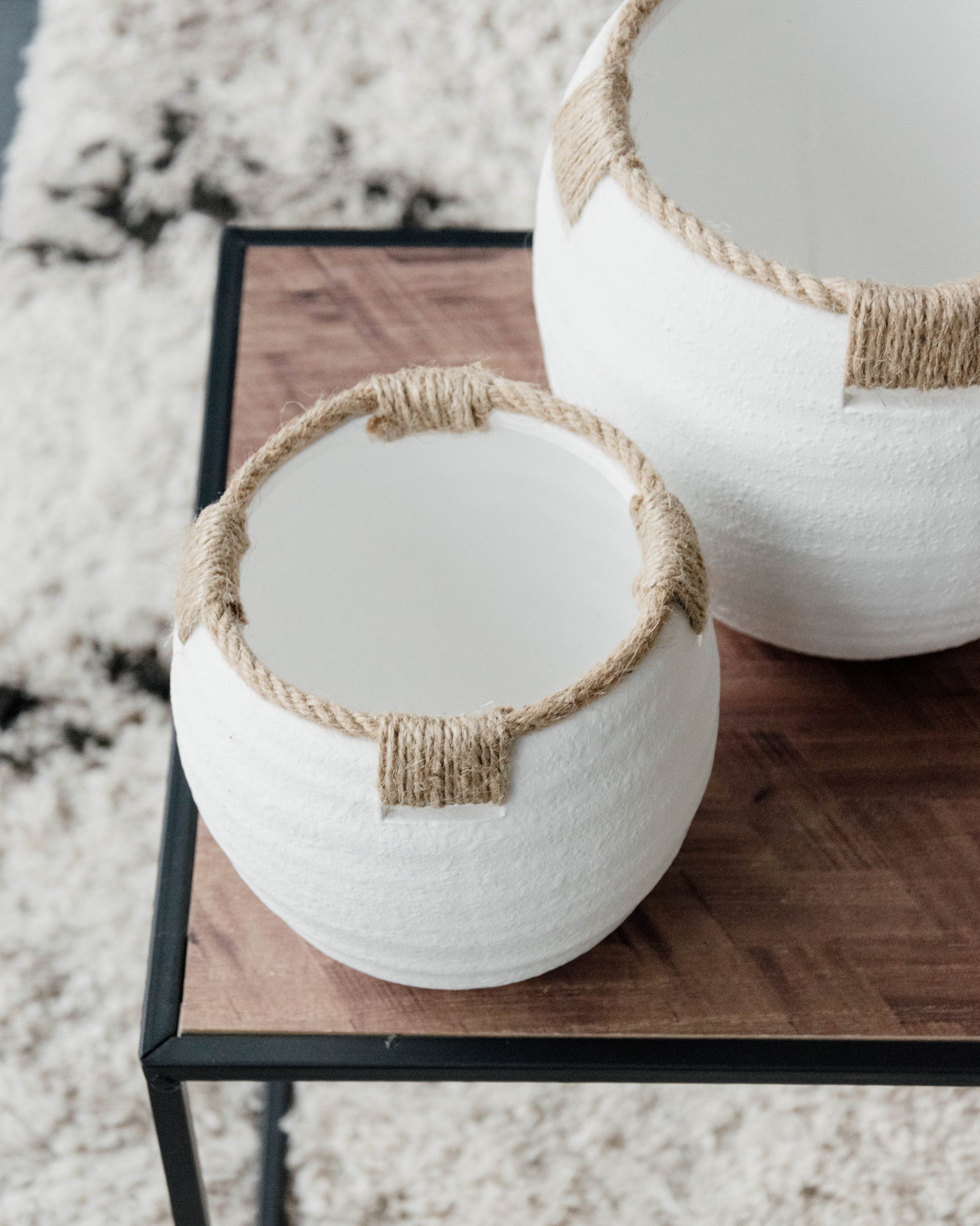 Bloempot Rope, een prachtige toevoeging aan je interieur, combineert functionaliteit met stijl. Deze witte bloempot, verkrijgbaar in twee verschillende maten, straalt een eigentijdse elegantie uit met een uniek randdetail van touw.