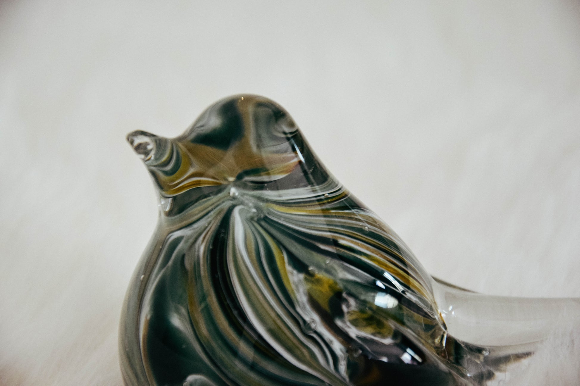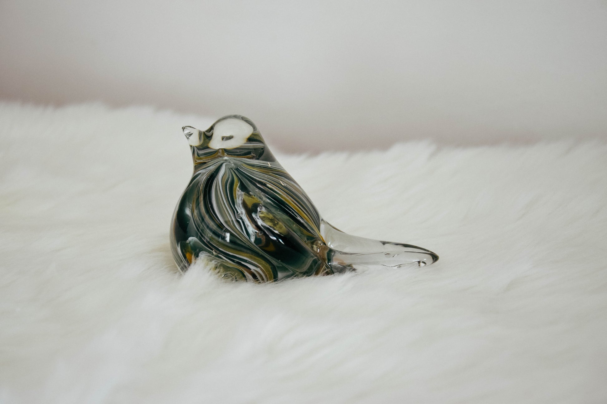 Dit glazen vogeltje doet meteen denken aan de gekleurde knikkers van vroeger – datzelfde speelse patroon, maar dan in een stijlvol beeldje. Elk exemplaar is uniek, met zachte kleurschakeringen die mooi oplichten wanneer het licht erop valt. Een klein item, zorgvuldig gekozen omwille van zijn nostalgisch kantje :)