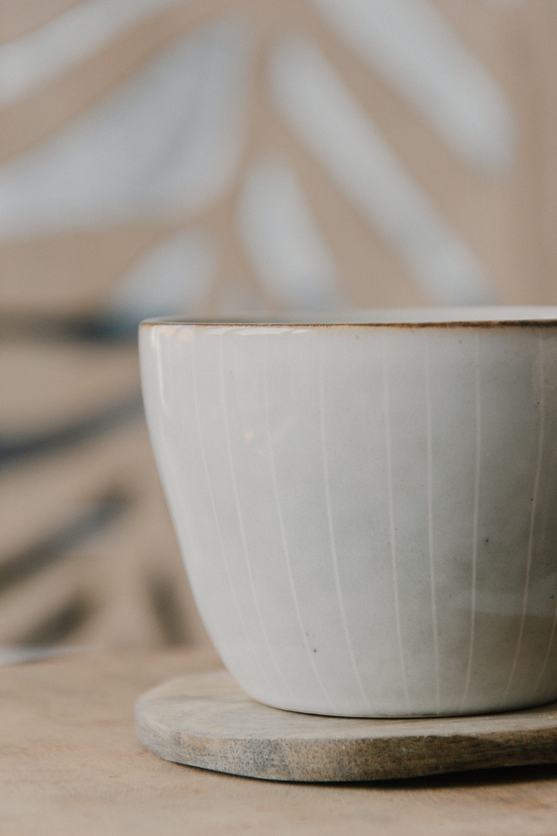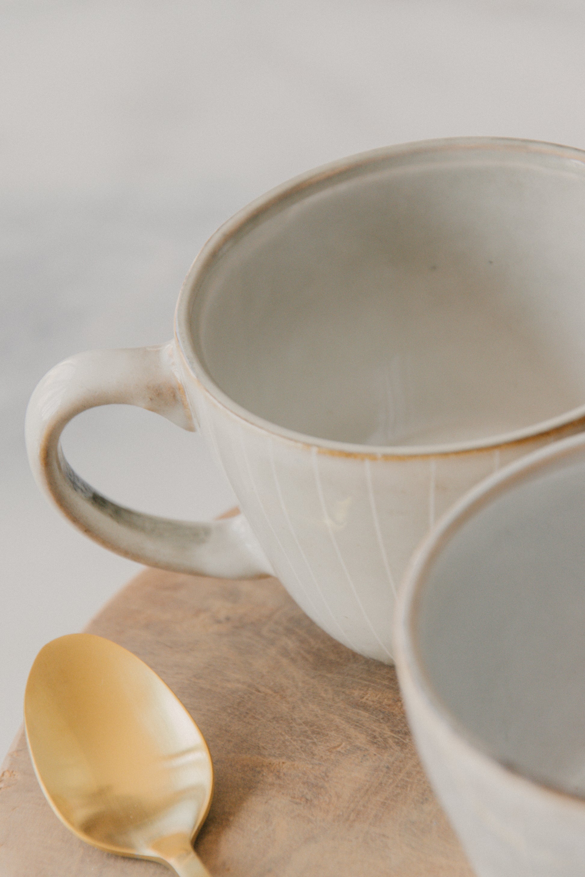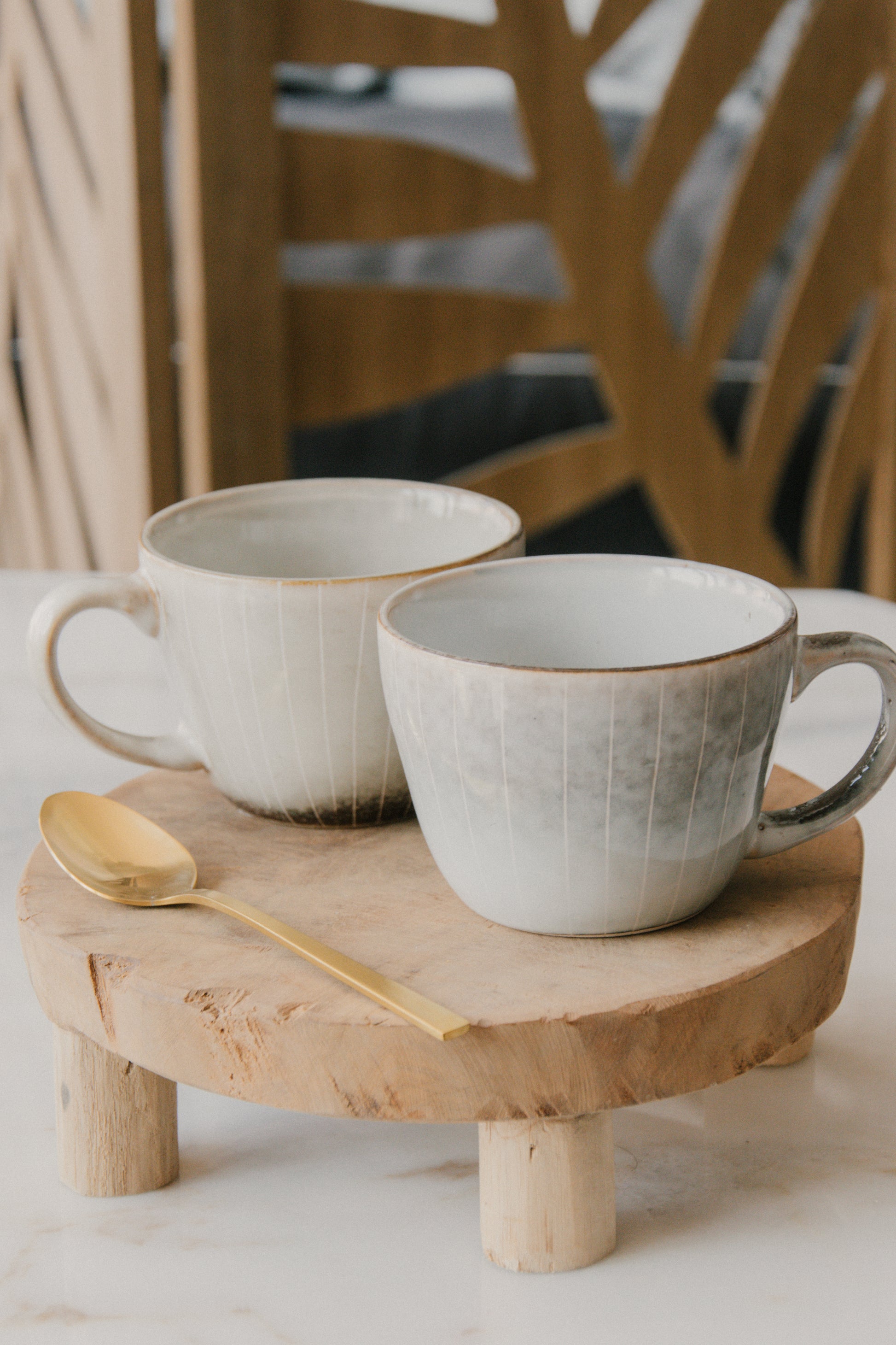 Deze koffietassen hebben iets rustgevends. Het subtiele streepjespatroon in wit geeft ze een zachte uitstraling, zonder te saai te worden. Ze liggen goed in de hand en hebben net dat tikkeltje karakter dat we zelf graag zien in servies.