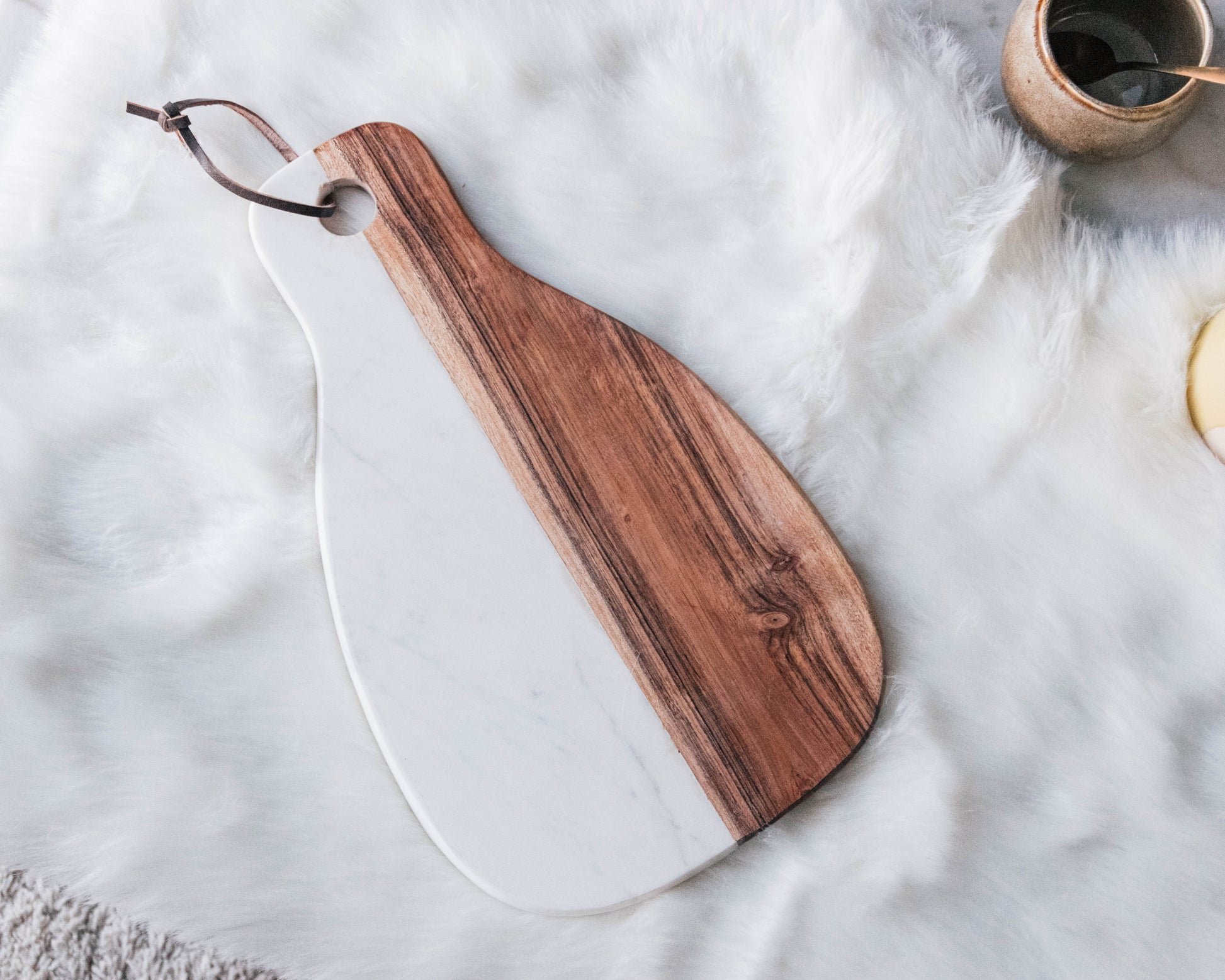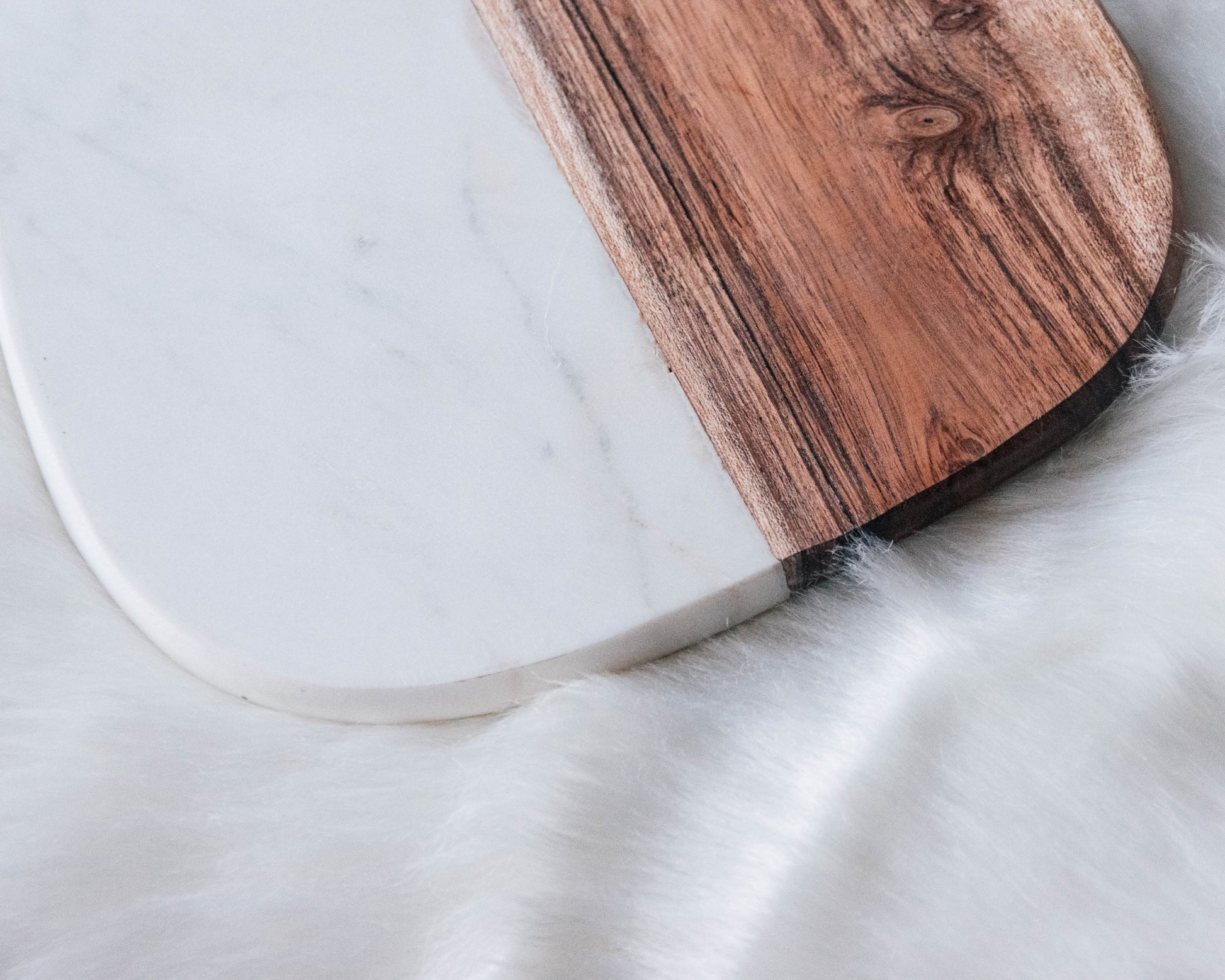 Tapasplank met stijlvolle combinatie van marmer en hout. Perfect om tapas en hapjes te serveren of gewoon als decoratie.