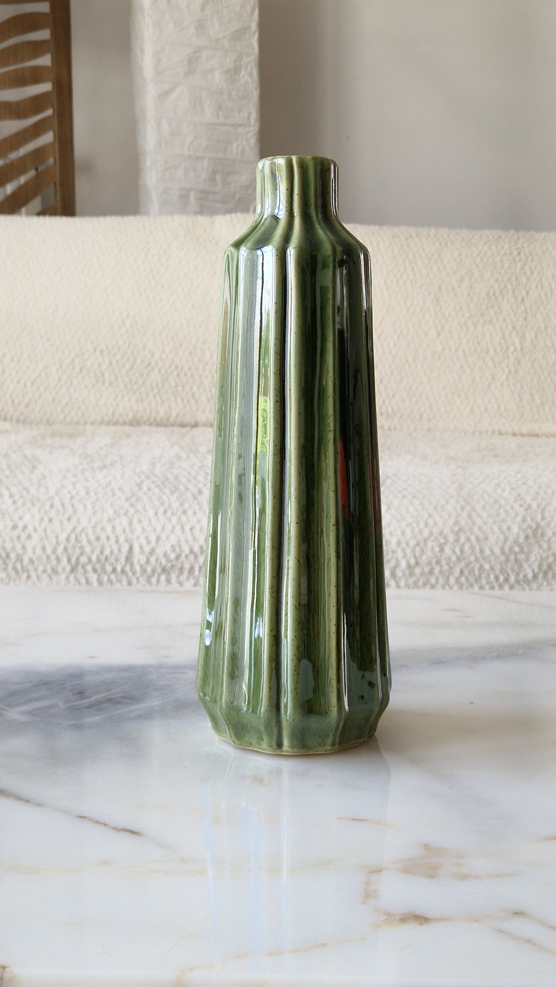 Deze keramieken vaas heeft een grove ribtextuur die zorgt voor een zachte, elegante uitstraling. Kies uit drie tinten die moeiteloos in elk interieur passen.
