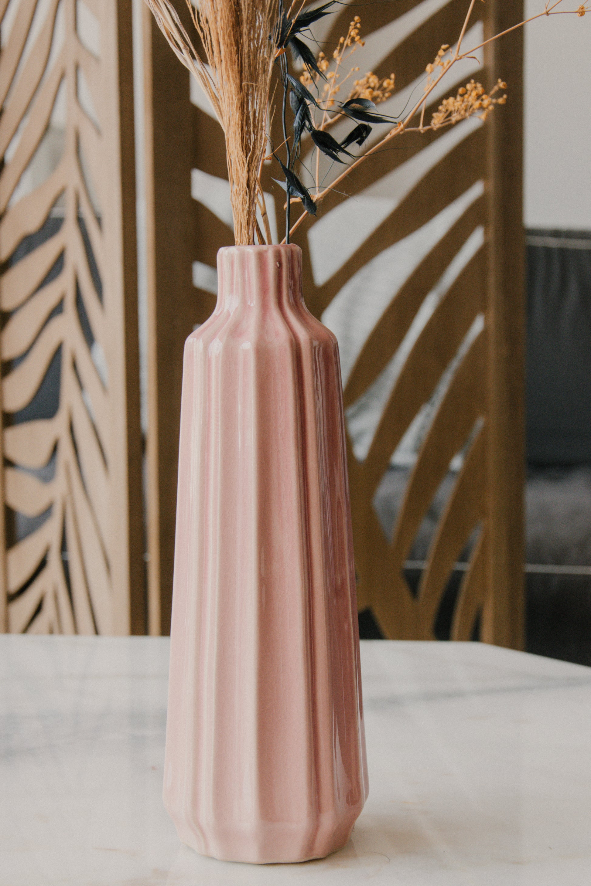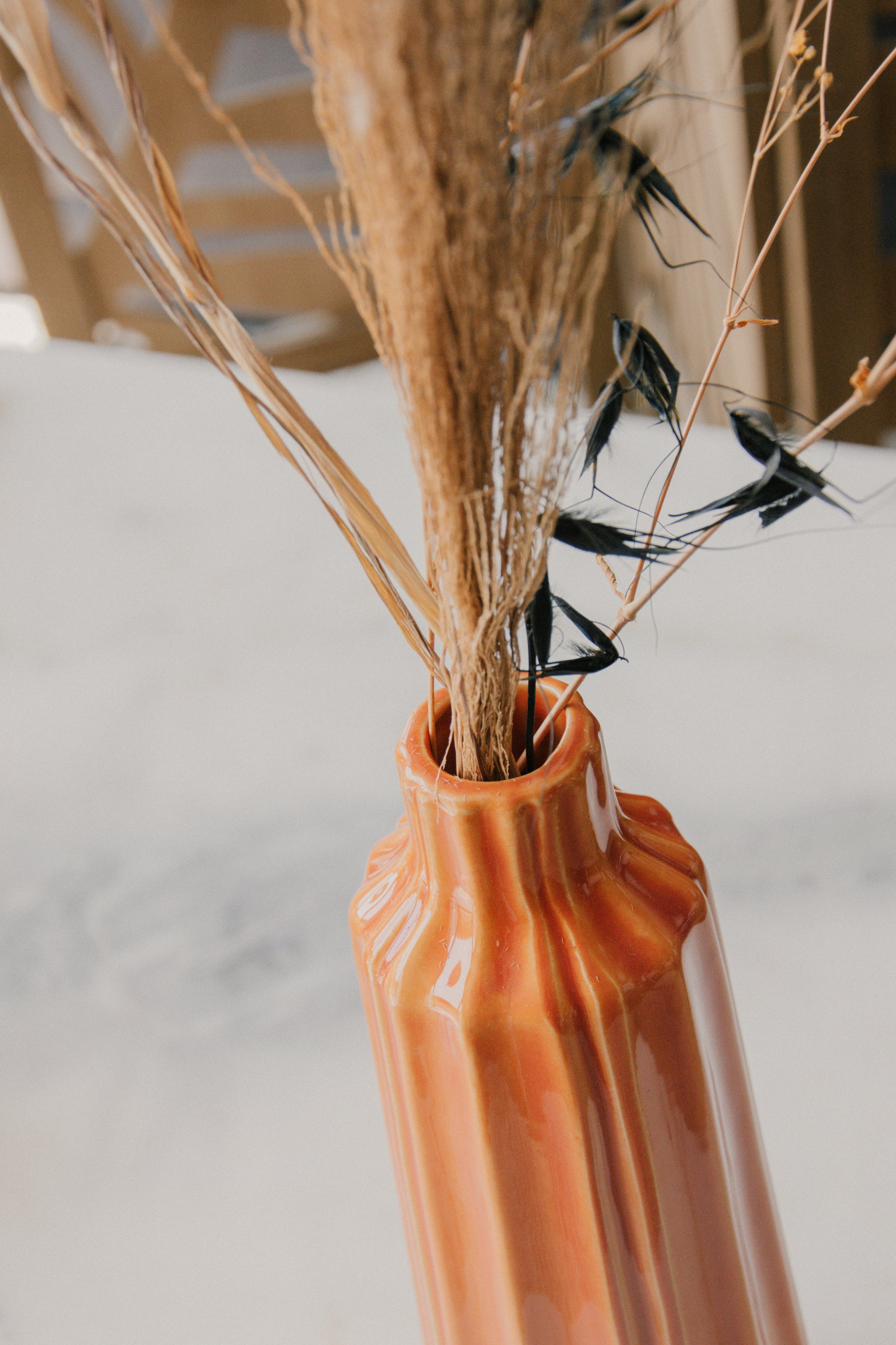 Zet ze met bloemen of een klein droogboeket op een tafel, vensterbank of dressoir. Door de vorm en textuur is het een vaas die opvalt zonder te overdrijven.