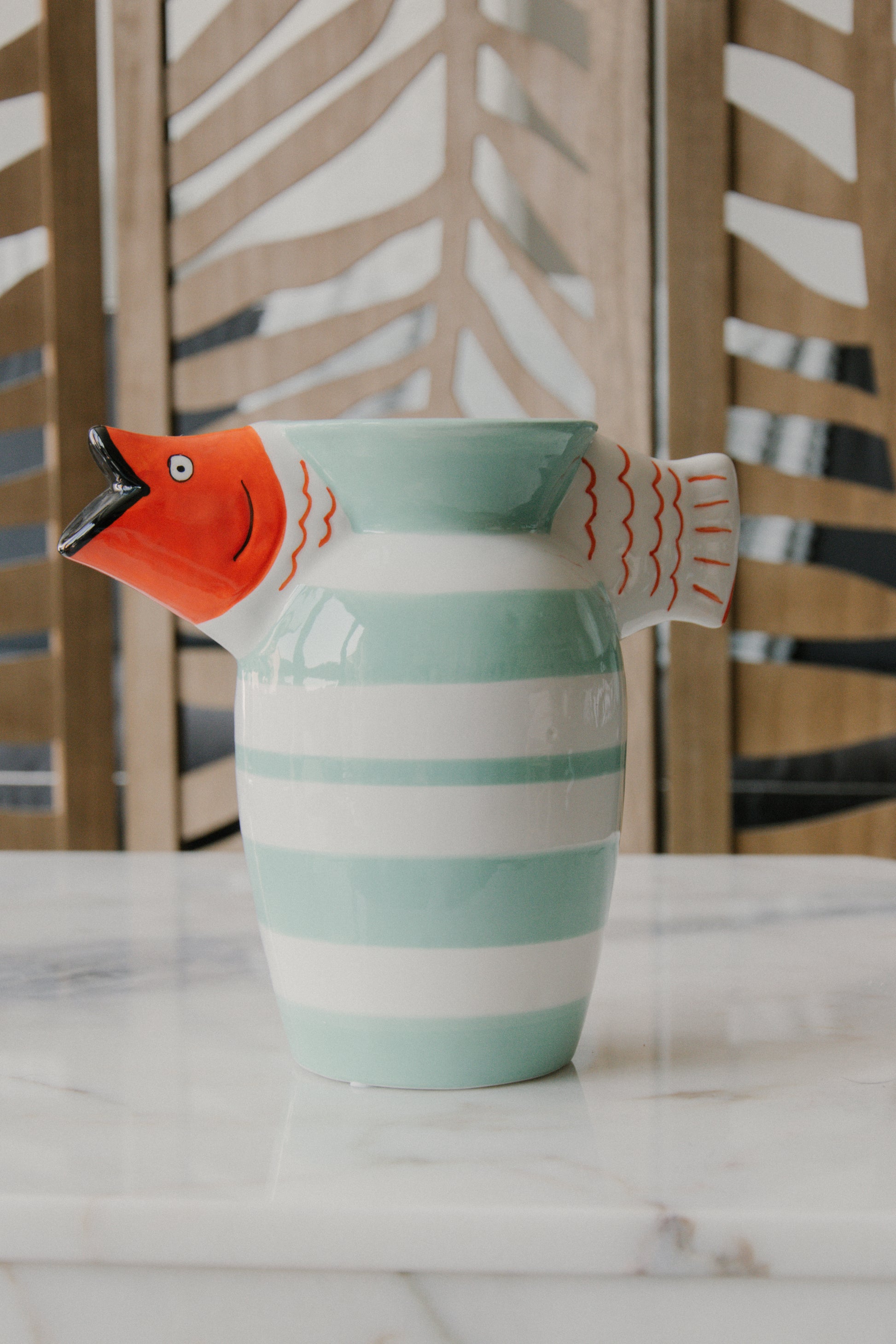 Vazen heb je nooit genoeg en deze vis vaas gemaakt van keramiek is een kunstwerk. De vis zwemt als het ware door de vaas en trekt meteen de aandacht. Je zou er niet eens bloemen in hoeven te zetten.