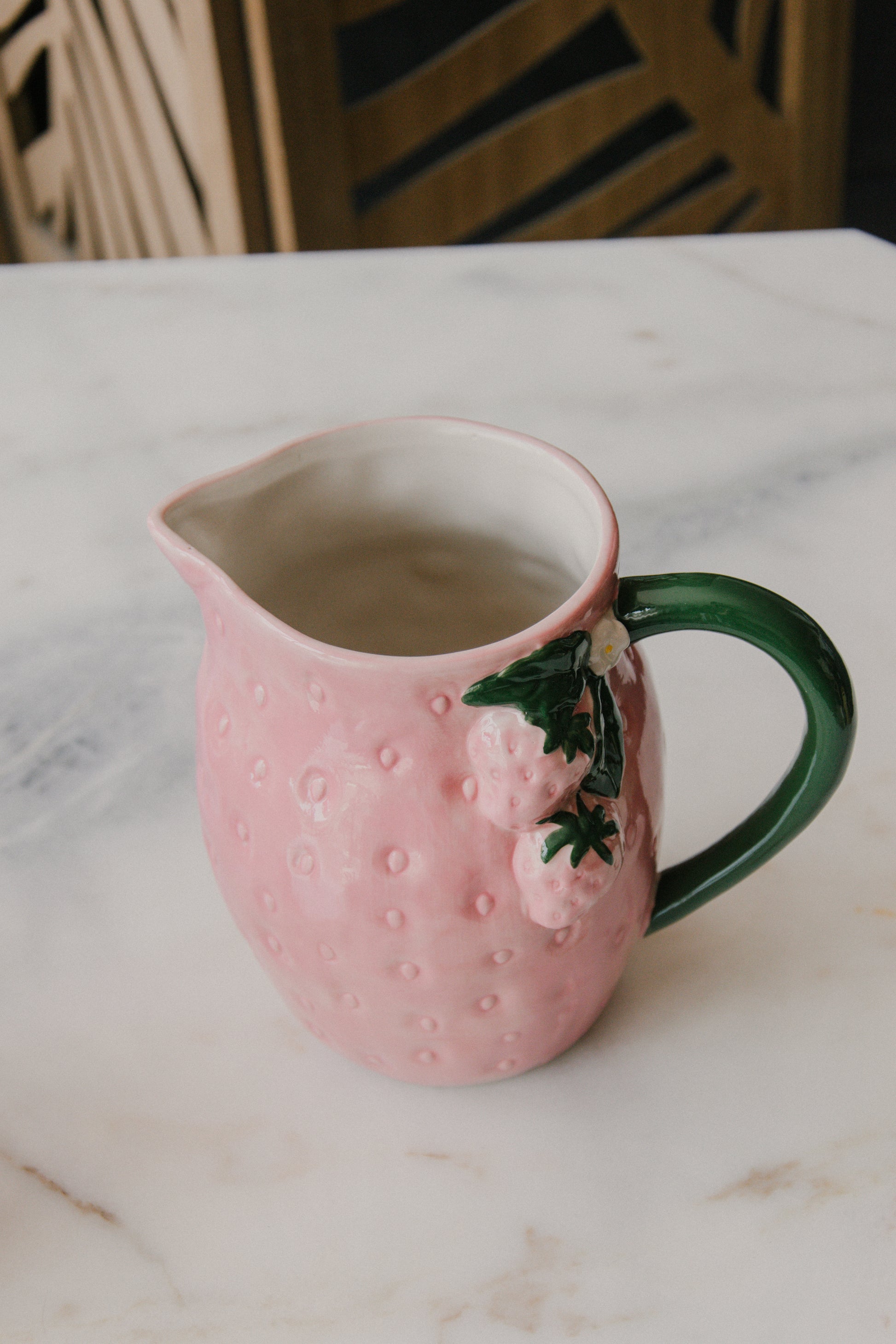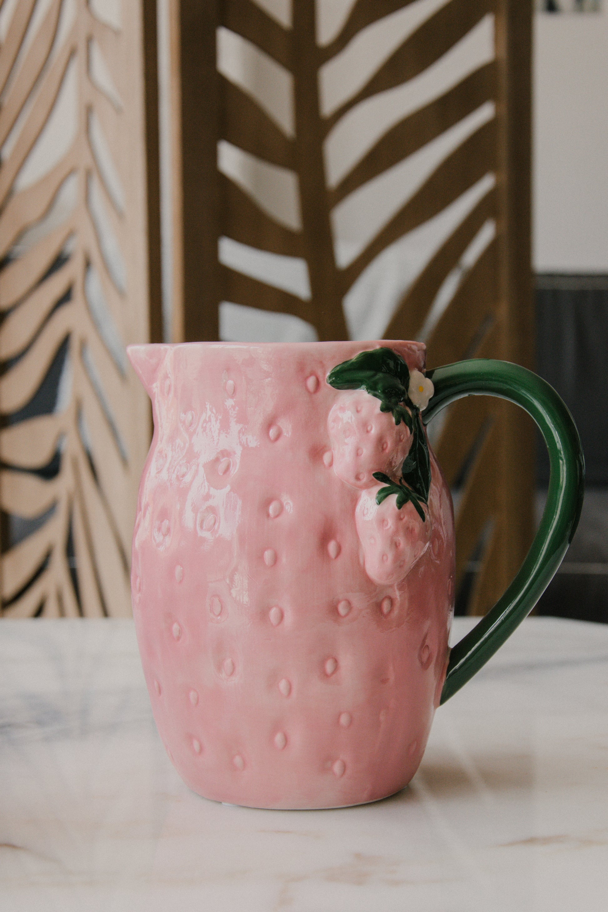 Deze roze aardbeienvaas is een vrolijke knipoog in keramiekvorm. Gemaakt uit stoneware met een glanzende afwerking en fijne details die haar speels maar toch stijlvol houden.