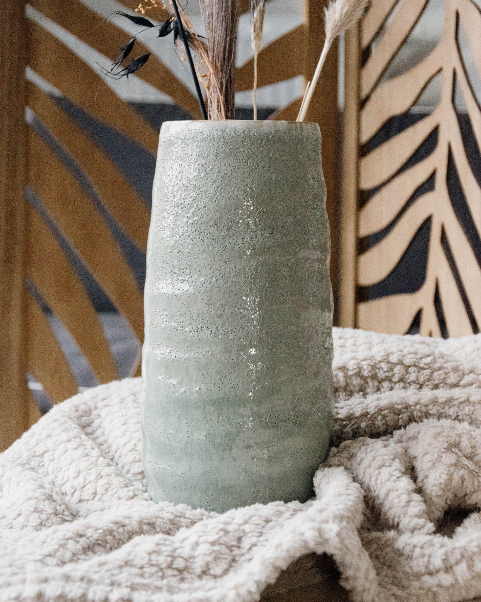 Met zijn subtiel organische vormen en glanzende afwerking voegt deze vaas een vleugje natuurlijke elegantie toe aan elke ruimte.