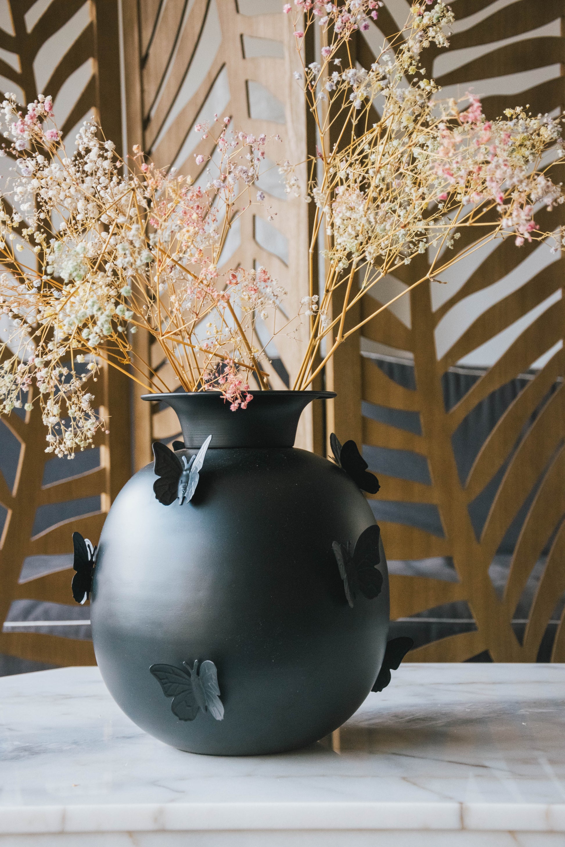 Deze unieke vaas is versierd met vlinders en geeft sfeer aan elke ruimte, met of zonder bloemen! Een echte eyecatcher voor in je interieur.