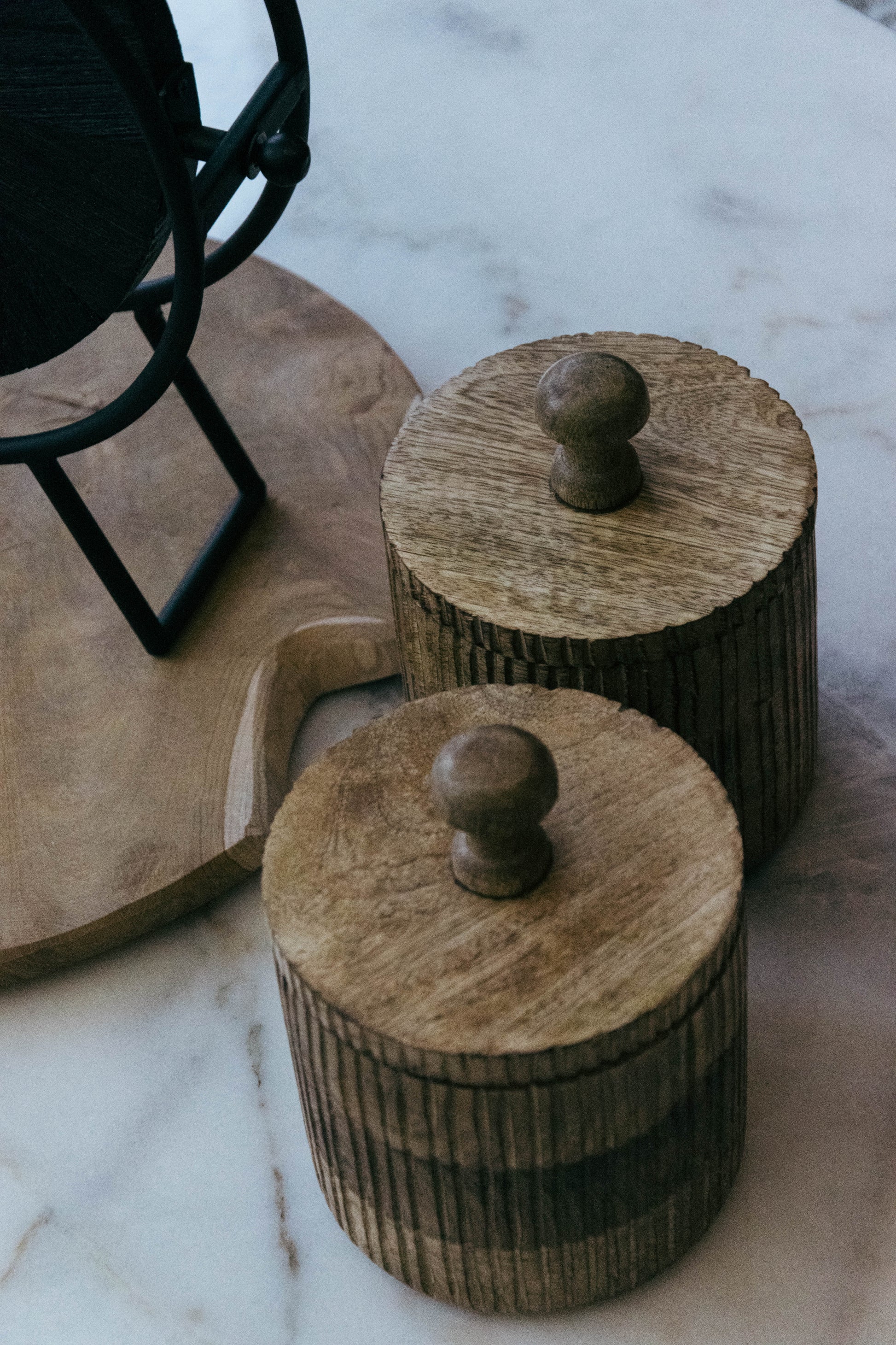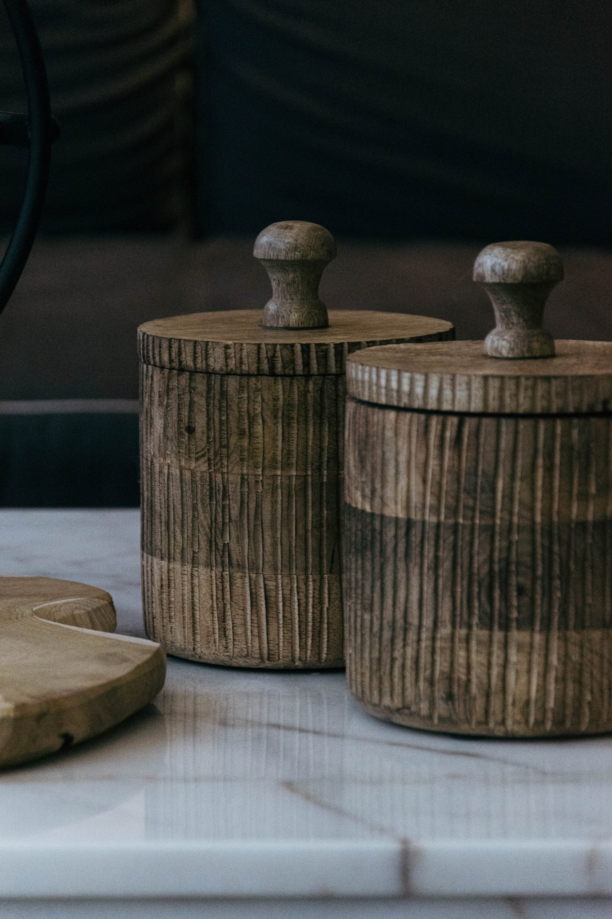 Ontdek voorraadpotje Bibo, een charmant houten potje dat functionaliteit en stijl naadloos combineert. Met zijn verfijnde groefjes voegt Bibo een vleugje natuurlijke elegantie toe aan jouw keuken of opbergruimte.